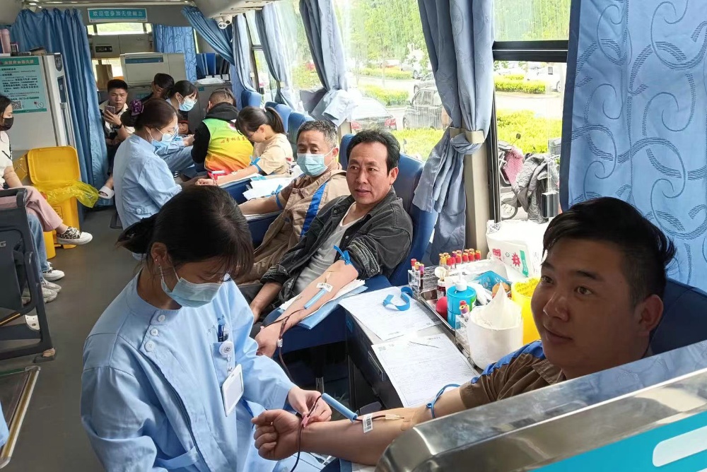 5月12日,在斜橋鎮政府會議中心的獻血現場,有一群特別亮眼的人,他們大部分穿著恒森卡其色的工作服,有序地流動在獻血的各個點上,填表登記、測量血壓、抽血化驗,而后勇敢地擼起袖子獻出殷紅的熱血。