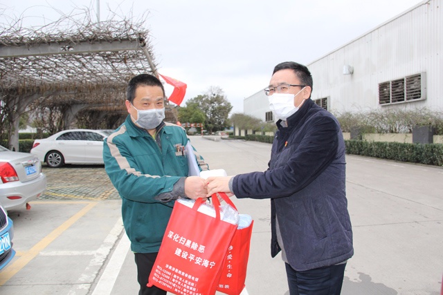 當前,抗擊新冠肺炎疫情正處于關鍵時刻,各家企業(yè)陸續(xù)迎來復工復產(chǎn)。2月15日,斜橋鎮(zhèn)黨委書記洪國清和黨委委員、副鎮(zhèn)長潘曉國專程到我集團股份二區(qū)工廠慰問調研,了解企業(yè)的開復工情況和碰到的一些問題,送上了1000只醫(yī)用口罩和2把測溫儀。