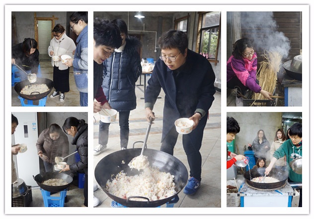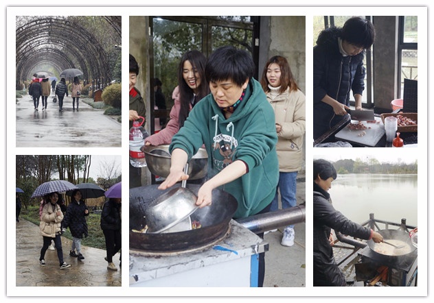 種完了多肉,大伙兒一起來到風(fēng)景優(yōu)美的鳳凰湖邊,開始了歡樂野炊。盡管天氣陰冷,野炊爐具均在室外,但是姐妹們還是一下子投入其中,淘米、洗菜、生火、做飯,忙得不亦樂乎。野炊中大家密切配合,輪番上場(chǎng),不一會(huì)兒功夫,4鍋香噴噴的“野飯”和一鍋暖暖的雞湯水餃便端上了餐桌。“好吃,好吃……”“咸淡正好,這是誰燒的呀?這么厲害!”“香……”離開工作舞臺(tái),個(gè)個(gè)都是居家好手,大家相互說笑著,品味著這份不同尋常的別樣午餐。
